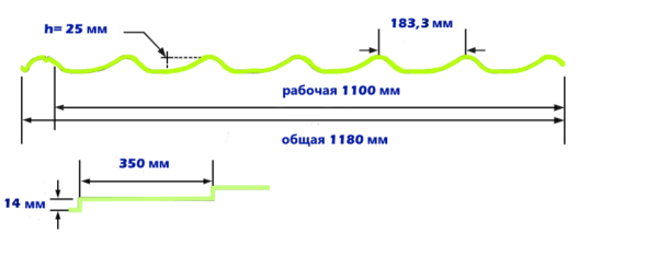 - Шаг волны 350 мм