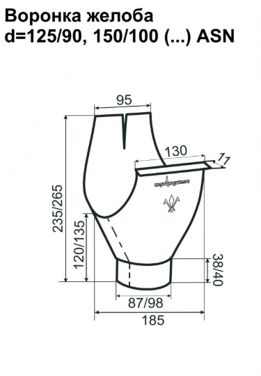 - Диаметр желоба 125 мм