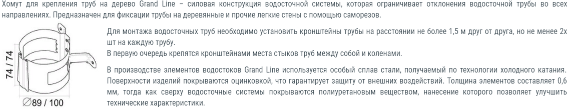 Описание кронштейна трубы на дерево Гранд Лайн 125х90