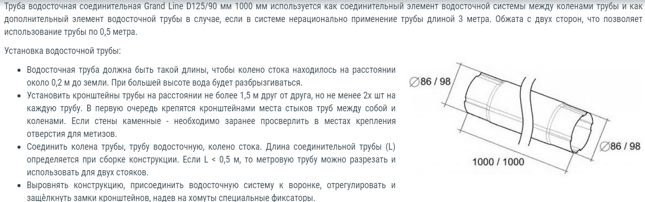 Описание трубы соединительной круглой Гранд Лайн 125х90 1 м