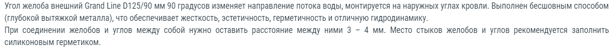 Описание угла желоба внешнего 90° Гранд Лайн 125х90