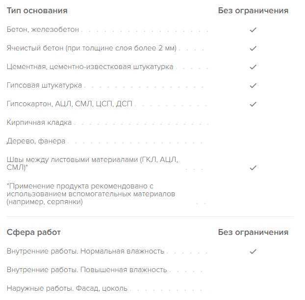 | ВИД РАБОТ | Для наружных и внутренних работ |