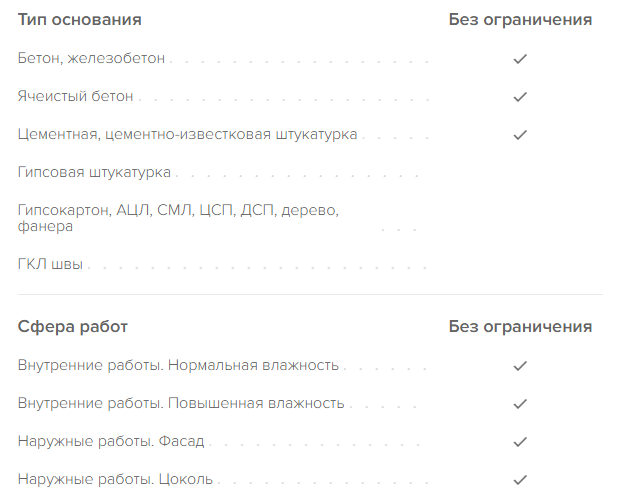 | ВИД РАБОТ | Для наружных и внутренних работ |