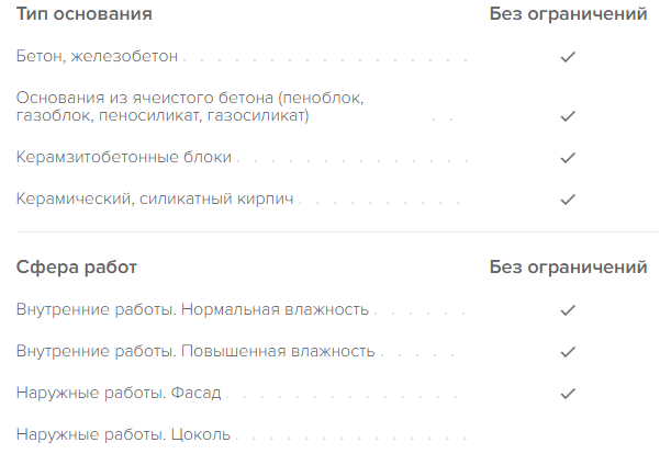 | ВИД РАБОТ | Для наружных и внутренних работ |
