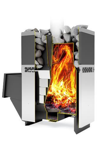 Печь «Русь» позволяет нагревать парную, не пересушивая её, и получать много пара с большой массы камней, создавая в парной микроклимат настоящей русской бани.