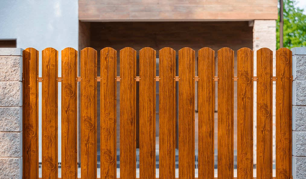 Евроштакетник металлический 102 мм Золотой орех полукруглый 0.45 мм