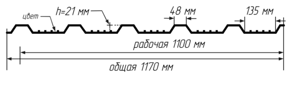 Технические характеристики профнастила НС21х1170 мм RAL 6005 Зеленый мох