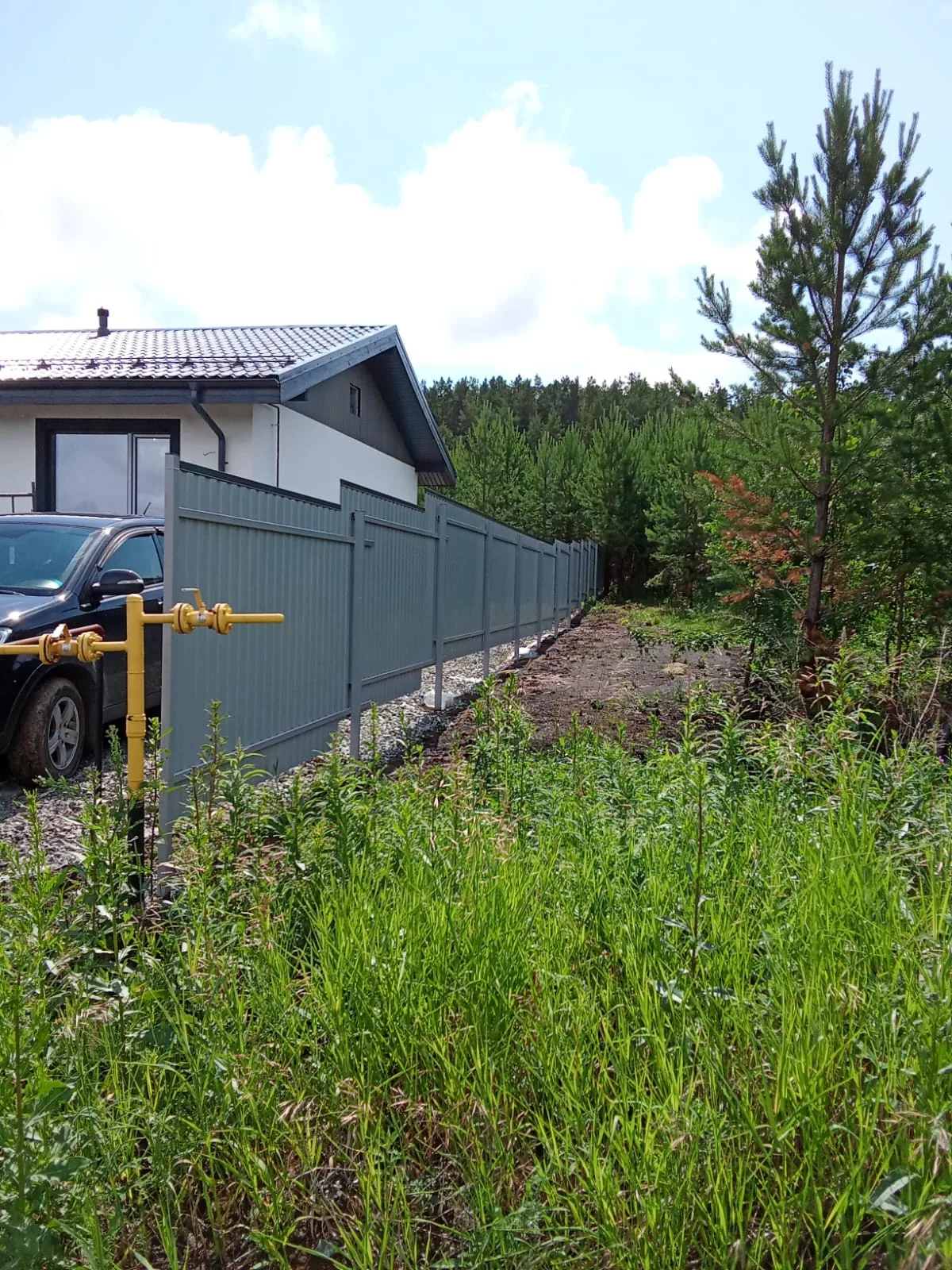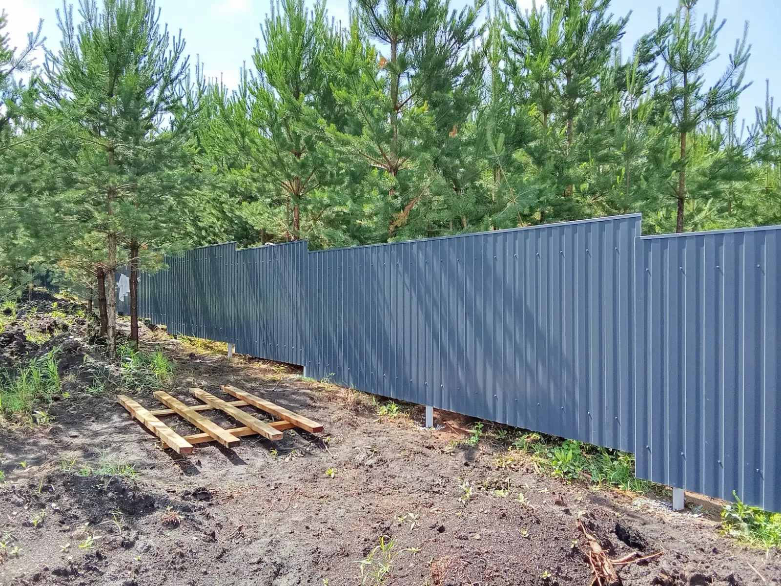 ✅ Защиту от влаги — деревянная обрешетка приподнимает профнастил над землей, предотвращая контакт с водой
