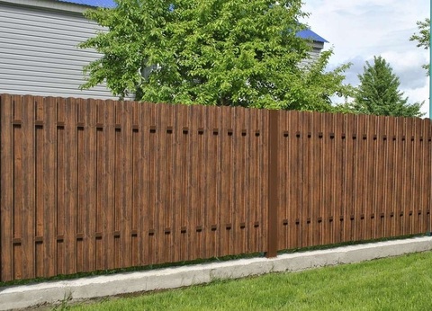 - совместим с другими материалами. Оцинкованный металлоштакет можно чередовать с декоративными столбами, устанавливать на кирпичное или каменное основание.